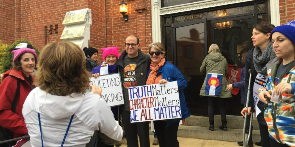 U.S. Rep. Jared Polis gathers with Colorado protestors ahead of the first Women’s March on Washington (Jan. 23, 2017)